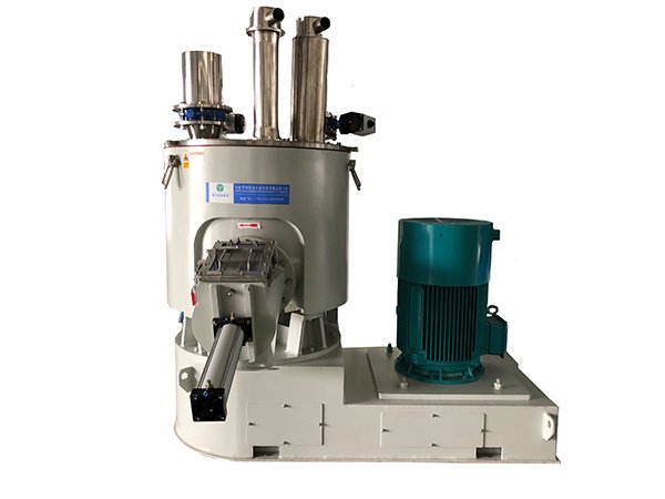 当高速混合机工作时,高速旋转的桨叶借助表面与物料的摩擦力和侧面对物料的推力使物料沿叶轮切向运动。同时,由于离心力的作用,物料被抛向混合室内壁,并且沿壁面上升,当升到一定高度后,由于重力作用,又落回,接着又被抛起。这种上升运动与切向运动的结合,使物料实际上处于连续的涡旋状运动状态。由于桨叶转速很高,物料运动速度也很快,快速运动着的粒子间相互碰撞、摩擦,使得团块破碎,同时迅速地进行交叉混合,这些作用促进了组分的均匀分布。